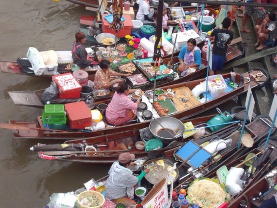 Questa giornata sarà dedicata alla visita guidata al più famoso mercato rurale galleggiante del mondo, il Damnoen Saduak, situato a circa 100 kilometri ad ovest di Bangkok. Le soste più interessanti saranno a Nakorn Pathom; uno dei più grandi Chedi in Thailandia chiamato "Phra Pathom Chedi, con la più grande pagoda di tutto il Sud Est Asiatico. Un’ eccellente pranzo a buffet sarà servito nel pittoresco ristorante del Rose Garden Country Resort.