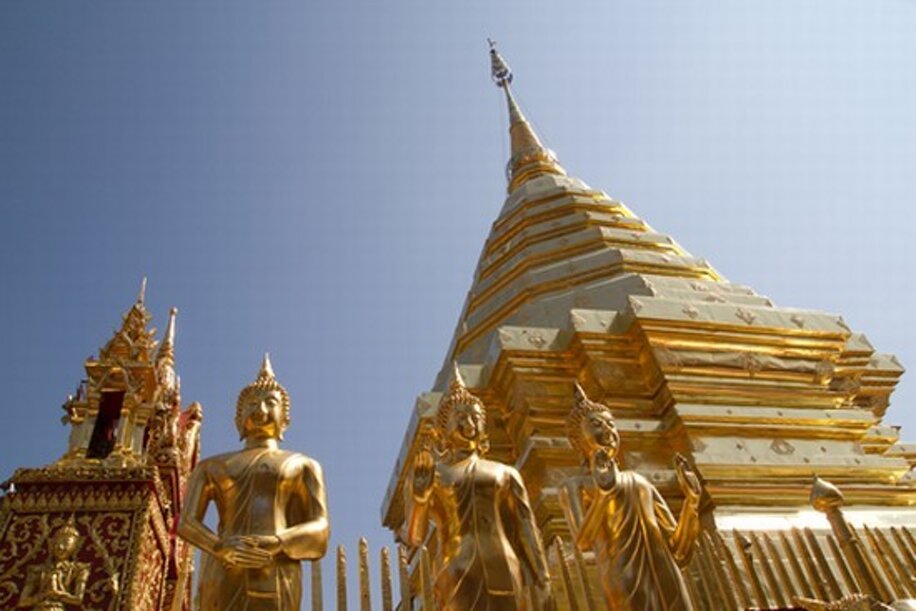 Prima colazione. Visita al tempio di Doi Suthep, ad oltre 1000 m. di altitudine. Visita alla fattoria delle orchidee, al centro artigianale di San Kampheng dove si producono oggetti un argento, lacche, ceramiche, sete ed i variopinti ombrelli di carta. Pranzo. Cena e pernottamento.